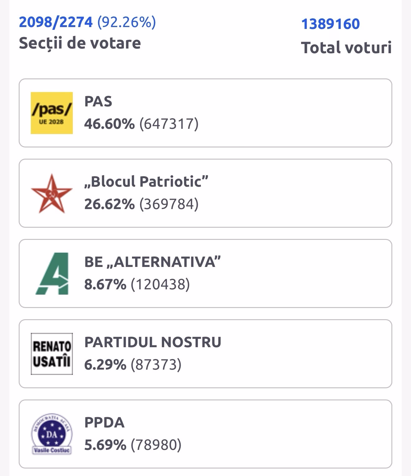 Victorie categorică pentru PAS: aproape 50% din voturi după centralizarea a 99% din secții